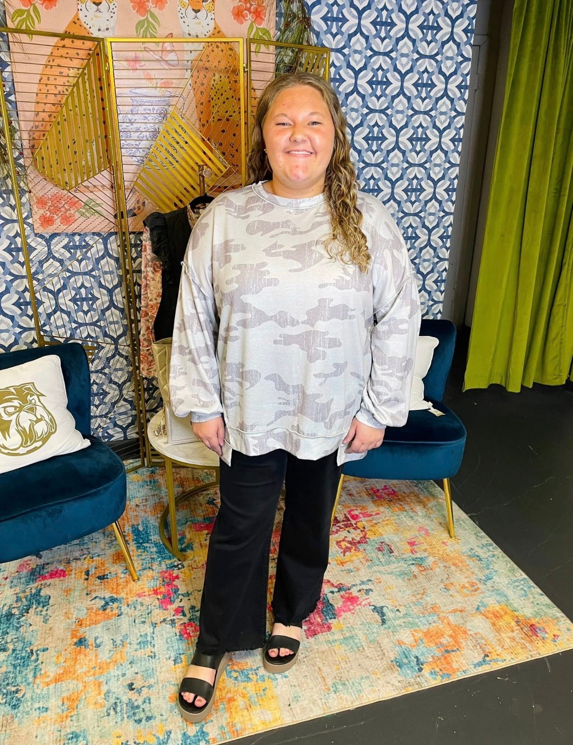 Curvy Camo Pullover