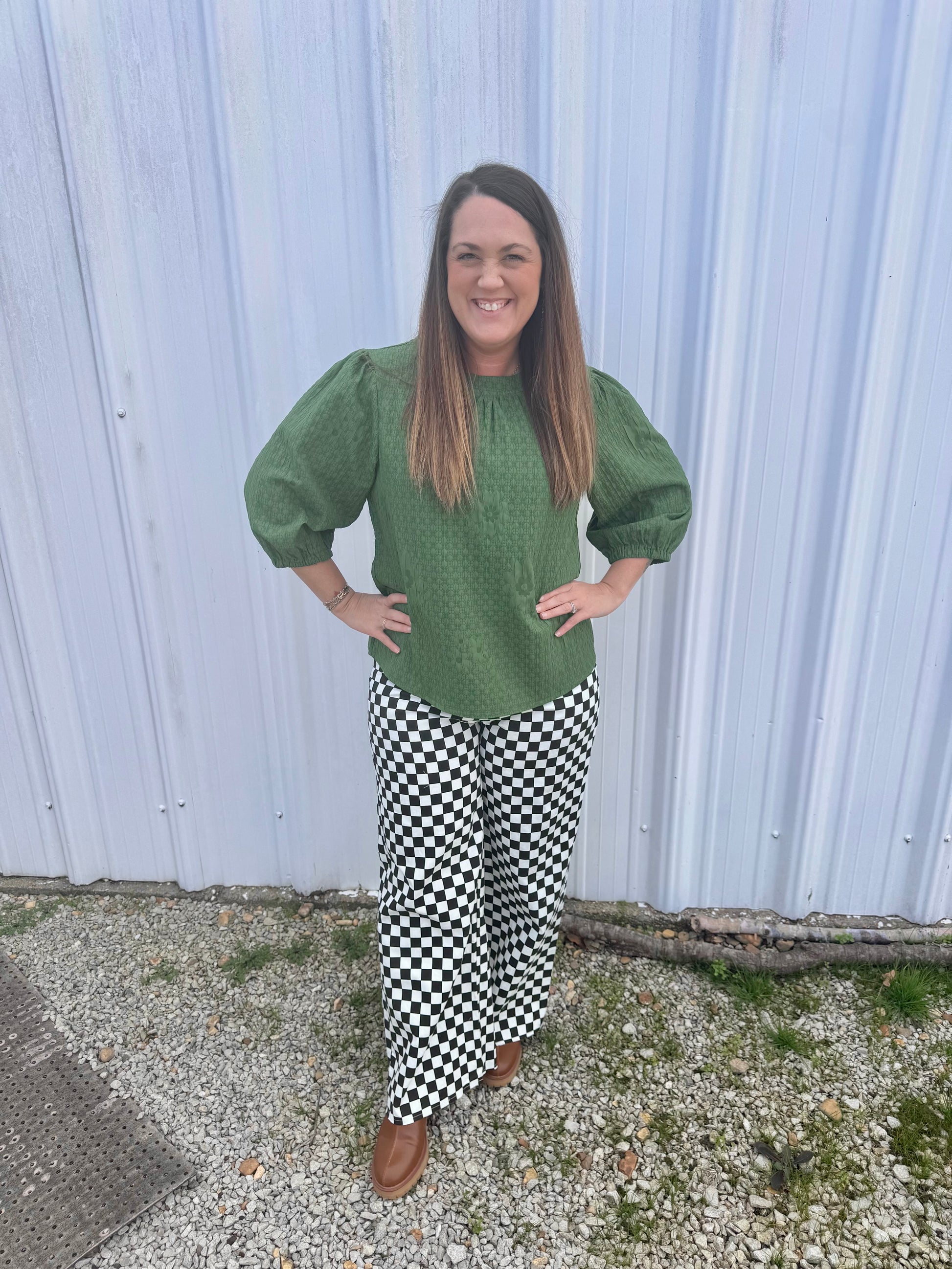 Expertly designed with a light olive color, the Hunter Top stands out with its embossed detail material. Its unique texture adds a touch of sophistication to any outfit. Versatile and stylish, this top is perfect for day or night, making it a must-have for any fashion-forward individual.